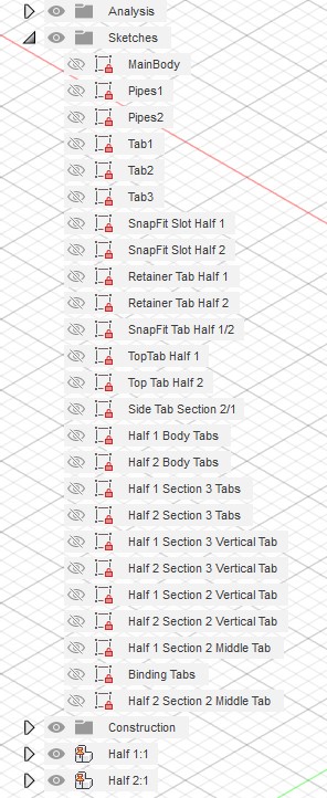 Fusion 360 works a little different. Sketches don’t get organized so automatically, and things can get… Messy.